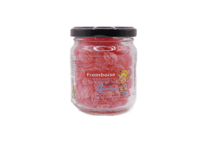 Ingrédients : sucre, sirop de glucose, miel 15%, arôme framboise, colorant rose